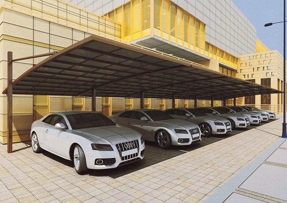 车棚雨棚由立柱和顶棚组成。立柱多由金属合金制造,如钢,铝等,质量轻且质地硬。车棚在市场上的发展和使用越来越广泛,车棚作为城市公交设施绿色出行的一部分,是市民停放车的固定场所,车棚的建设单位打造城市低碳交通,为了还城市一个健康清新的环境,市民要加强意识,从而达到减低碳元素类,特别是二氧化碳的排放量,从而减少对大气的污染,减缓生态恶化,膜结构车棚是建筑结构中最新发展起来的一种形式,自从1970年代以来, 膜结构在国外已逐渐应用于体育建筑、商场、展览中心、交通服务设施等大跨度建筑中。